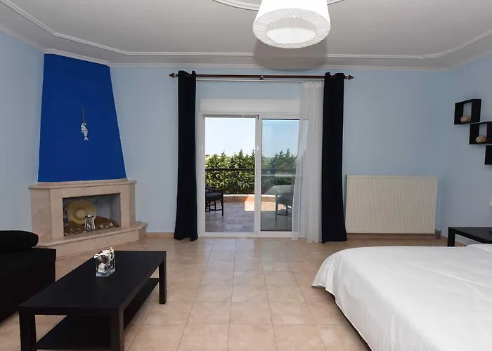 Vila Calypso - Luxuri Apartments u Nea Flogiti se nalazi na 1.5km ili 20 minuta hoda od peščane plaže Flogita sa plavom zastavom. Kolima je potrebno 5 minuta vožnje, vila ima parking. Do centra Flogite stiže se za 10 minuta hoda. Nalazi se na 5 minuta vožnje do plaže Dionisiou. Solunski aerodrom je udaljen 40 minuta. Smeštaj: Vila raspolaže 1/2 i 1/3 studijima,1/4 i 1/4+1 apartmanima, kao i 1/8 dupleksom koji je odličan izbor za dve porodice sa decom. Sve smeštajne jedinice imaju svoje ime. Nalaze se na prizemlju, prvom i drugom spratu. Pretezno sve sobe imaju pogled na prelepo dvorište, od kojih neke imaju i pogled na deo dvorišta u kome se nalazi bazen. U prizemlju vile se nalazi velika terasa, koja ima prostor za sedenje, roštilj, a u zatvorenom delu se nalazi recepcija, garnitura za sedenje, bilijar. Vila poseduje lift.